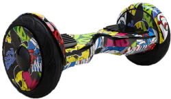 Freewheel Monster S2 Graffiti Elektromos hoverboard, kerék 10 hüvelyk, Hatótávolság 20 km, Applikáció, Sárga   A Monster S2 a Self-Balance funkcióval van felszerelve ami a legújabb fejlesztés a Hoverboard mezőben, ez megkönnyíti a használó rá állását a hoverboardra. Ez azt jelenti hogy a hoverboard magától vízszintes pozícióba áll és nem billen el még akkor sem ha csak az egyik lábat helyezzük rá. Ez a funkció nagyon hasznos azoknak akik még nem használtak hoverboardot és egyedűl akarják megtanúlni használni. A Monster S2-höz applikációt is terveztek aminek Freewheel App a neve és ingyen letölthető Androidra és iOS-re. Szállítási fogantyúja is van, ami egy védő gumírozással van ellátva ez által nagyon szilárd és könnyen szállíthatóvá teszi a hoverboardot. A Monster S2 az egyik legkedveltebb hoverboard nem csak a technikai adottságai miatt hanem a védőház kialakítása miatt ami tökéletesen van méretezve ez által kényelmesebbé teszi a használatát. Az élénk színezésnek köszönhetően pedig vibráló és energikus megjelenés ami szórakozásra késztet. A kerekek 10 hüvelykes átmérőjének köszönhetően nagyon stabíl és nyugodtan használható különböző nehézségü terepeken.